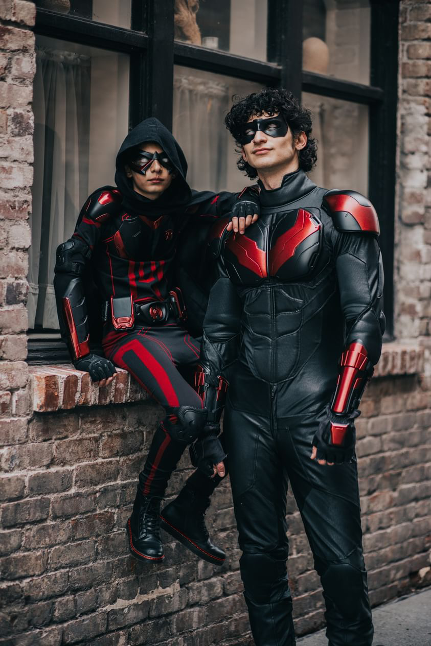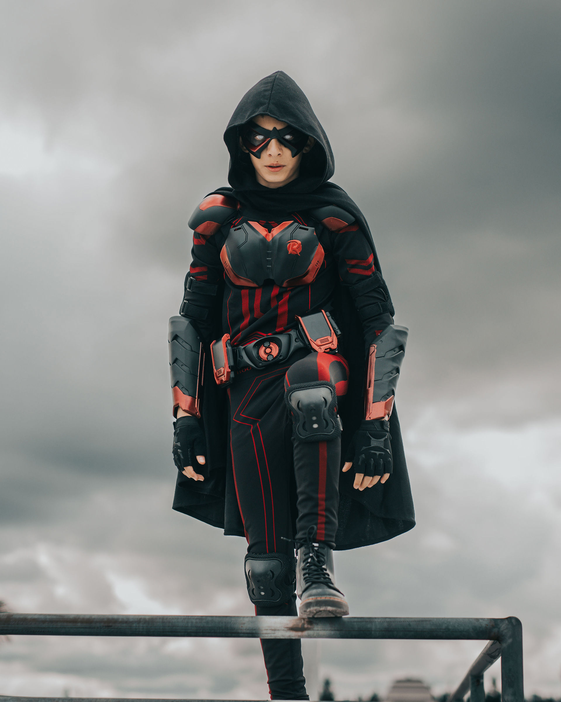 Components are carefully mounted and secured to the suit or structure, balancing form and function.