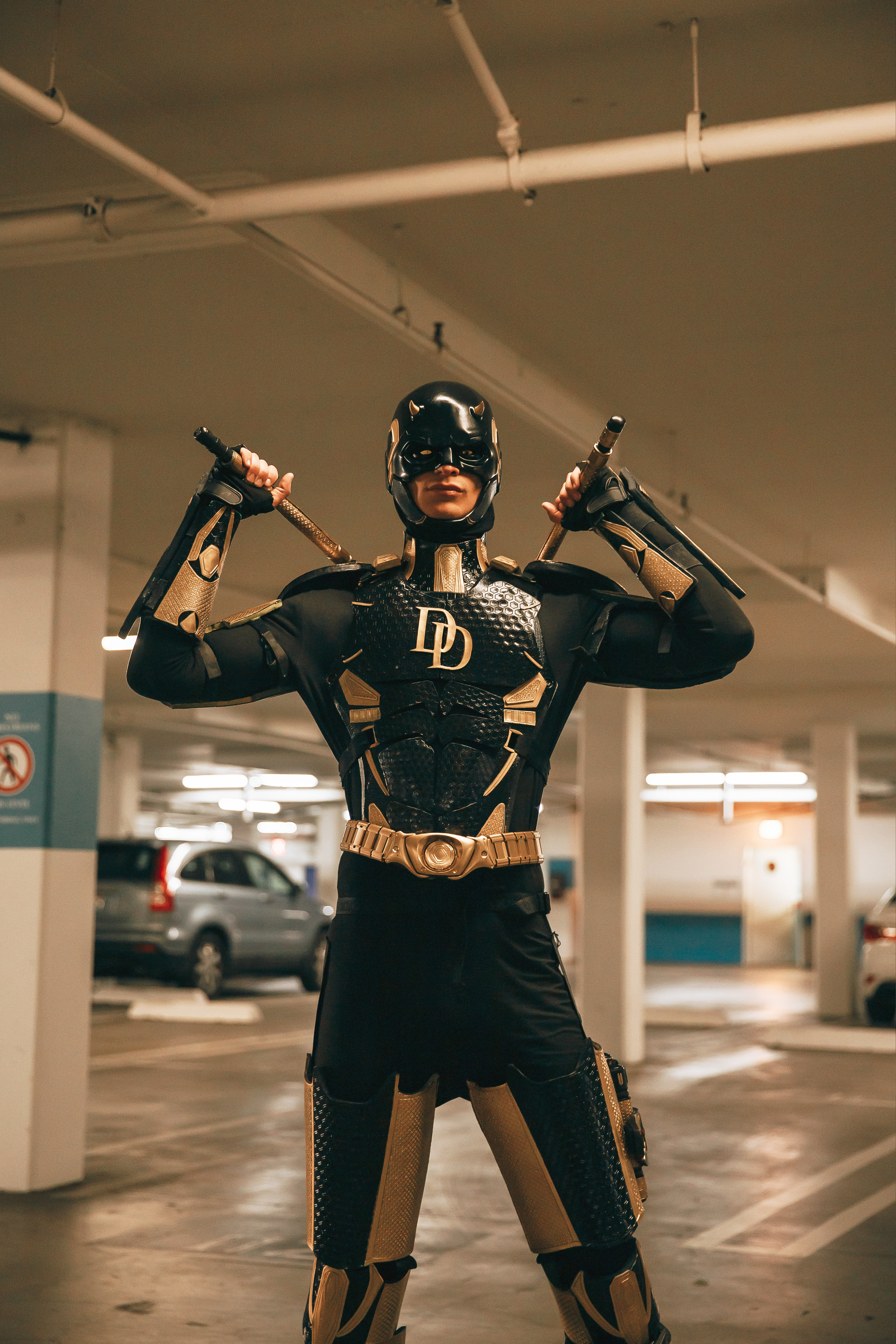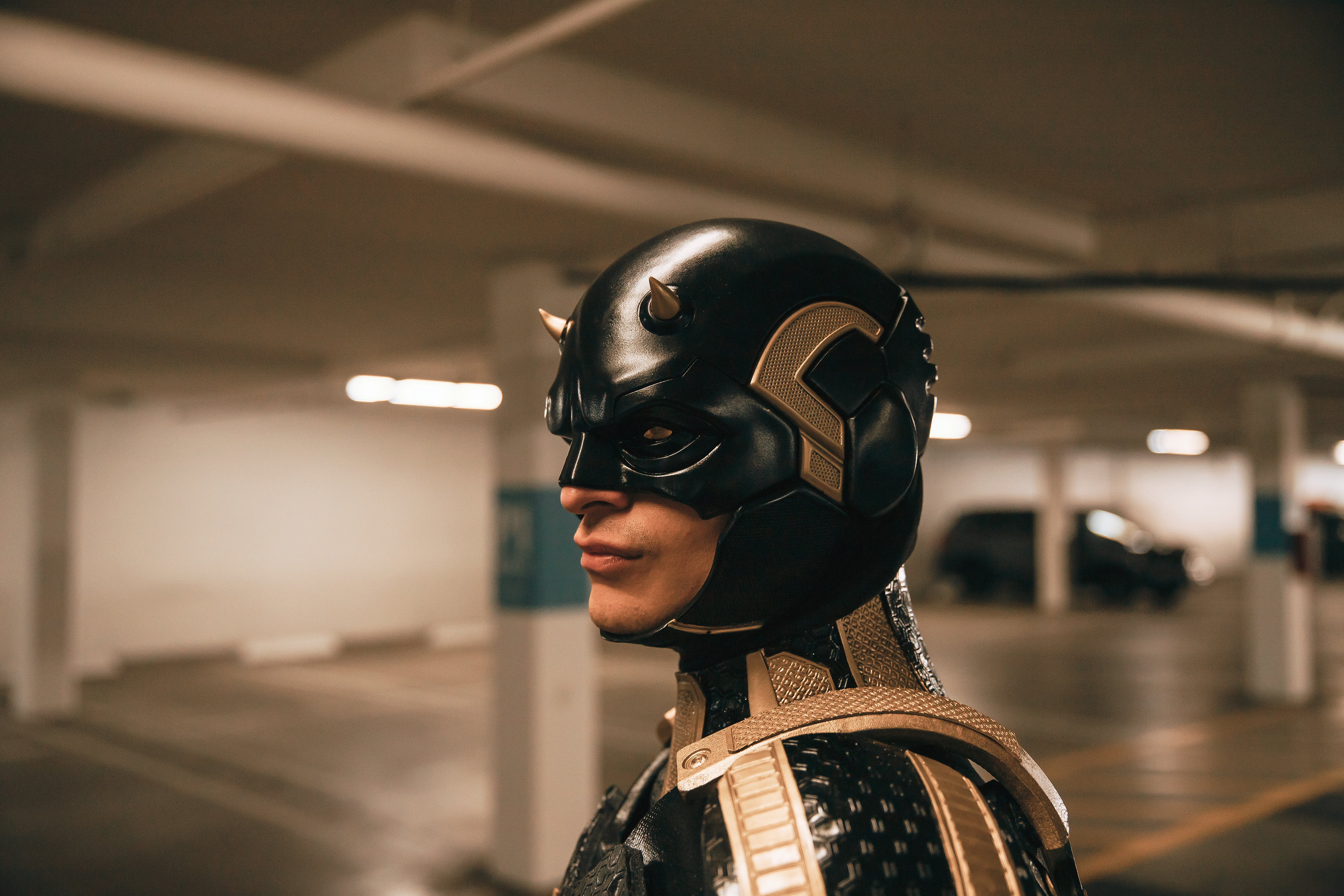 Foam pieces were shaped, carved, and heat-formed to add dimension and edge. Components were then glued and layered strategically, building up the suit’s structure while maintaining flexibility and mobility.